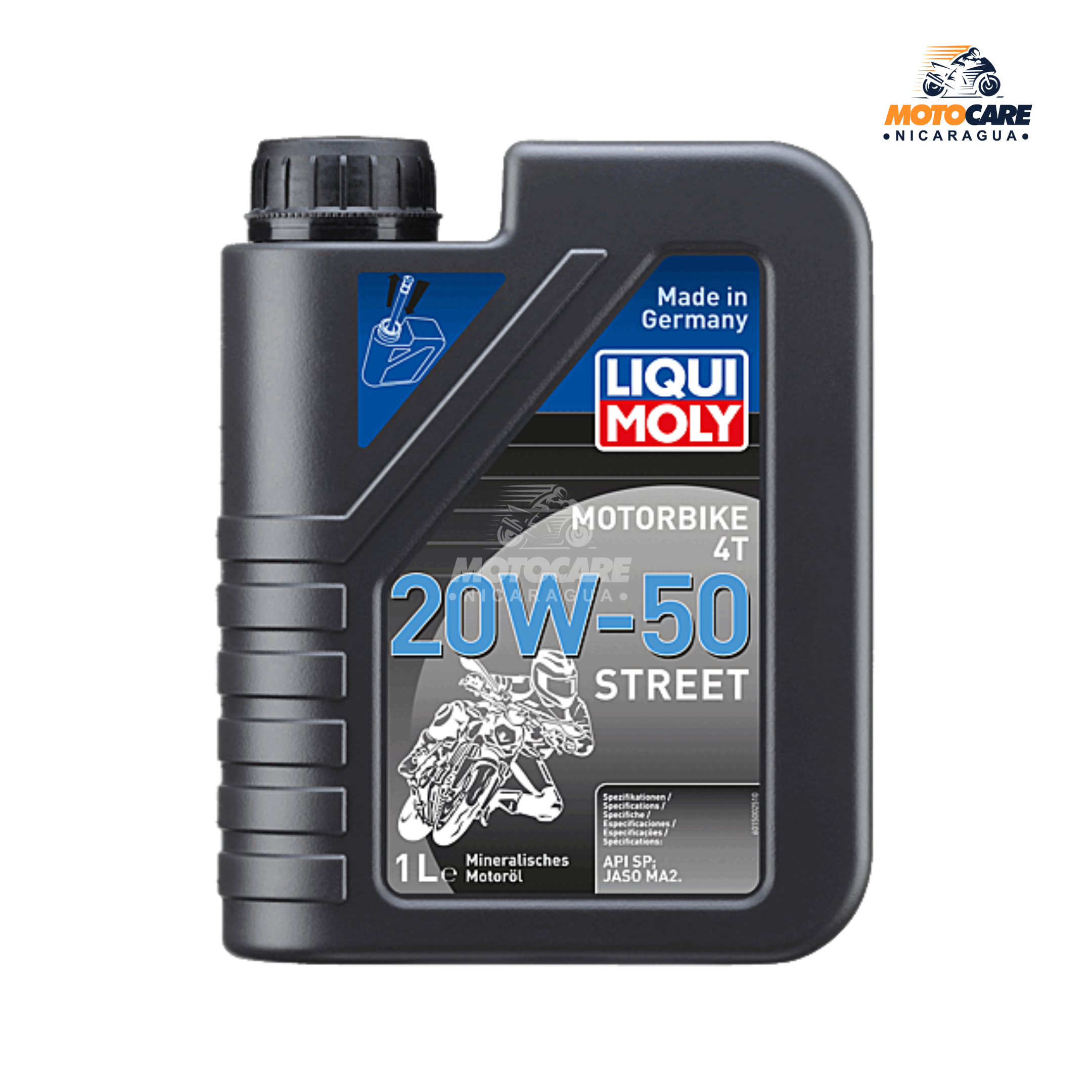 Liqui Moly 4T Street 20W-50 es un aceite de motor especialmente desarrollado para motos con motores de 4 tiempos refrigerados por aire o por agua, que enfrentan condiciones de uso desde normales hasta elevadas. Su formulación se basa en aceites minerales seleccionados y aditivos de alta calidad que aseguran una lubricación confiable y protección eficaz contra el desgaste, incluso en recorridos largos o exigentes.
