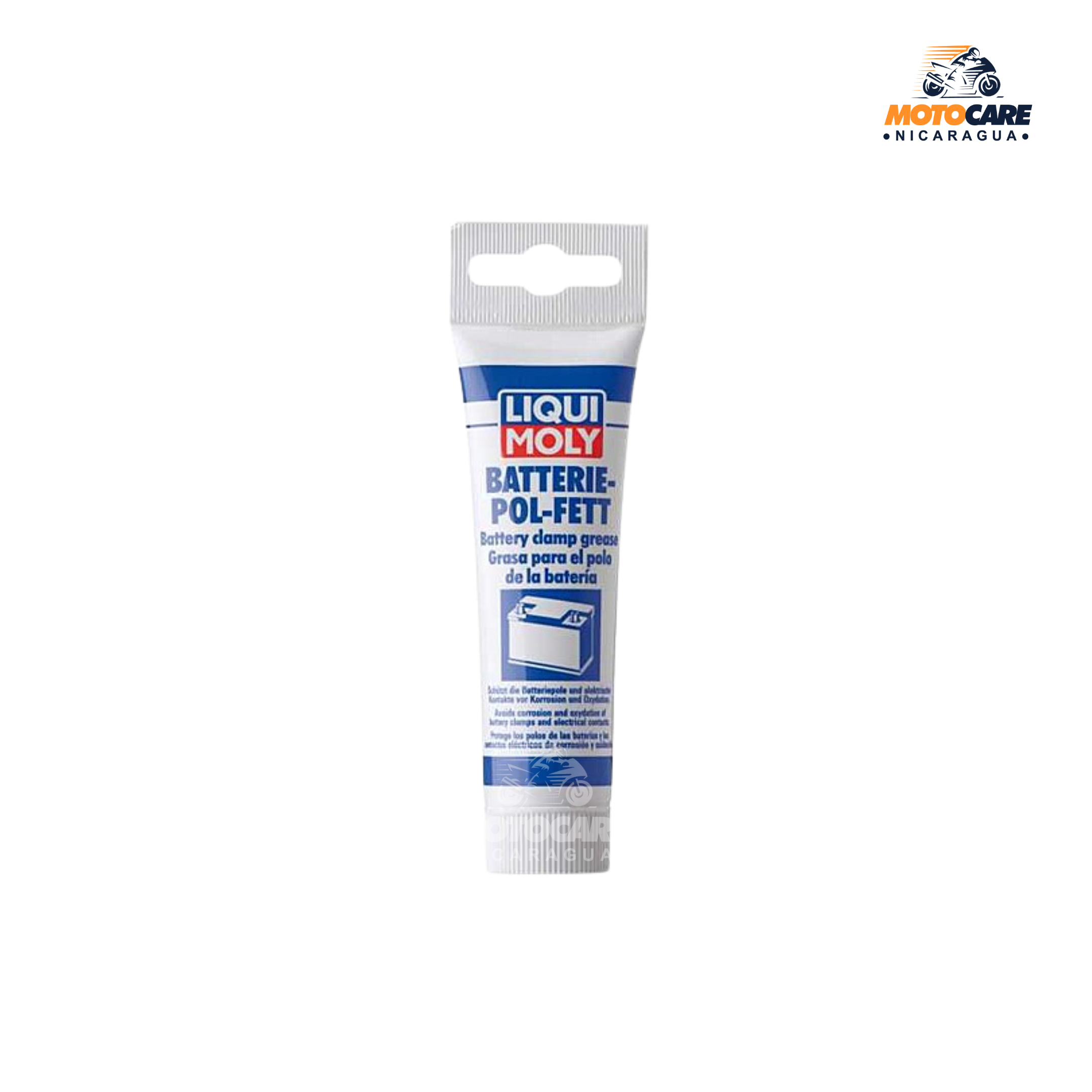 Liqui Moly Grasa para el Polo de la Batería es una grasa de calidad especialmente formulada a base de jabón de cal, compatible con plásticos, que protege los terminales de la batería y los contactos eléctricos contra corrosión, oxidación y daños por ácido. Este producto reduce la posibilidad de corrientes de fuga y resistencia eléctrica en los polos, lo que contribuye a un arranque más seguro, una iluminación más brillante y una mayor vida útil de la batería y los sistemas eléctricos del vehículo.